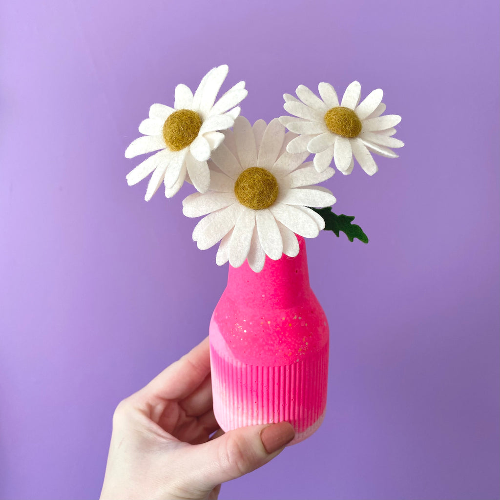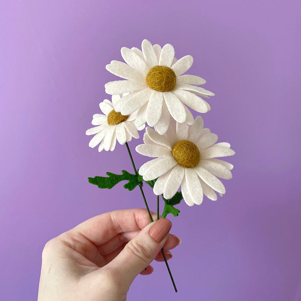 3x Felt daisies, perfect for a bud vase!